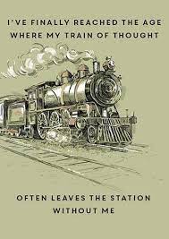 'Vintage', by Ling Design Front Reads ' I've Finally Reached The Age Where My Train Of Thought Often Leaves The Station Without Me' Inside Reads: W...